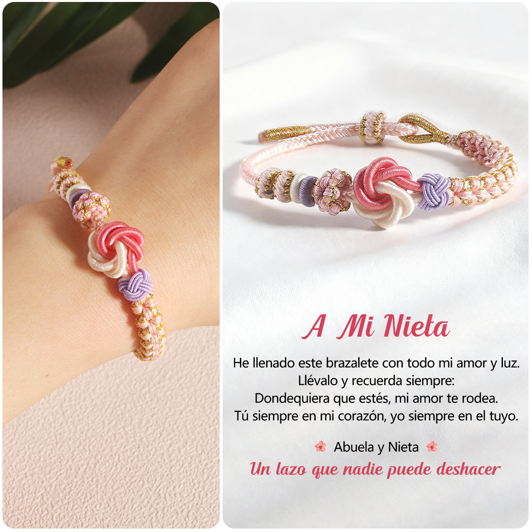 Mi Nieta - Pulsera Nudo de Flores en Rosa y Blanco