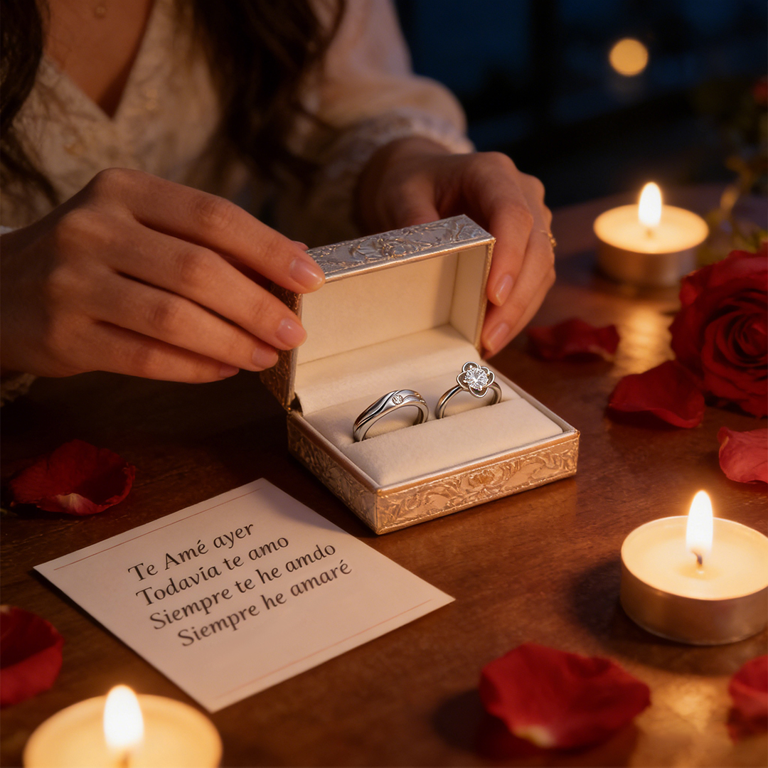 Estos anillos representan el inicio de un viaje compartido lleno de amor, confianza y compromiso duradero. Celebra tu historia de amor con estos anillos que capturan la esencia misma del compromiso y la unión eterna.